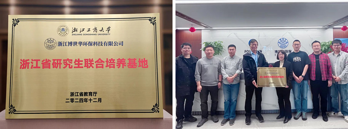 近日,浙江博世華環??萍加邢薰颈徽憬〗逃龔d授予“浙江省研究生聯合培養基地”稱號。授牌儀式在浙江工商大學環境學院院長汪美貞以及周玉央、陳再明兩位老師見證下舉行。